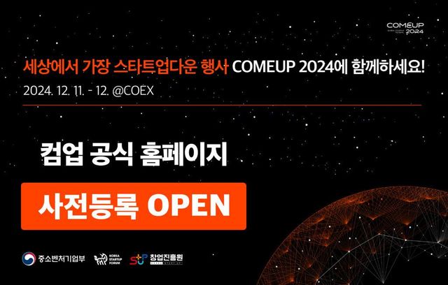 글로벌 스타트업 페스티벌 ‘컴업(COMEUP)’의 주관기관 코리아스타트업포럼(의장 한상우, 이하 코스포)은 12월 11~12일 서울 강남 코엑스에서 열리는 컴업 2024 온라인 사전등록을 개시한다고 21일 밝혔다.