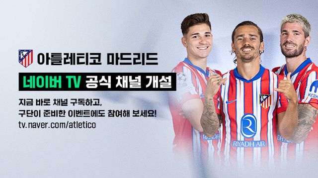 네이버는 한국에서 매일 약 5000만 명의 이용자가 방문하는 가장 영향력 있는 온라인 플랫폼 중 하나로, 정보와 엔터테인먼트의 주요 허브다. 아틀레티코 마드리드는 네이버 공식 채널을 통해 독점 콘텐츠, 인터뷰, 비하인드 영상 등을 한국 팬들에게 제공해 독특하고 몰입감 있는 경험을 선사할 예정이다.
