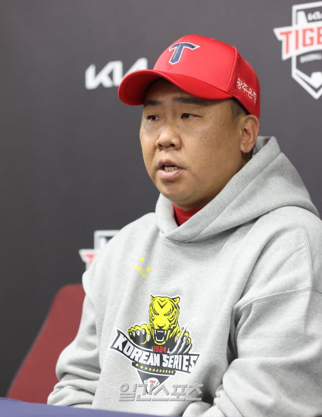 이범호 감독은 21일 광주-기아 챔피언스필드에서 열린 삼성 라이온즈와의 KS 1차전에 앞서 "왼손 불펜 5명을 엔트리에 포함한 배경"에 대한 취재진 질문을 듣고 "(임)기영이랑 (김)대유랑 고민했다"라고 운을 뗐다. KIA는 KS 엔트리(30명)에 투수 14명(삼성 13명)을 넣었다. 삼성보다 야수를 1명 줄이고 투수를 1명 추가, 마운드의 높이를 올렸는데 베테랑 임기영의 이름이 빠져 '의외'라는 얘기가 나왔다. 대신 이범호 감독은 왼손 불펜을 5명(곽도규·이준영·최지민·김기훈·김대유)이나 꾸렸다.