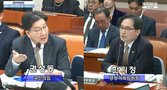 ▲ 권성동 의원(좌)와 한기정 공정위원장(우) (사진출처: 국회방송 국정감사 생중계 갈무리)