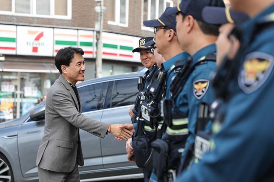 김진태강원특별자치도지사는21일경찰의날을맞아도경찰청기동순찰대와함께춘천효자동안전취약지역일대합동순찰에나섰다.