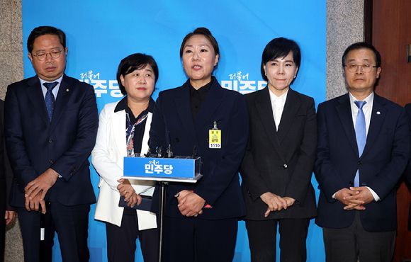 강씨는 이날 국회 법제사법위원회 대검찰청 국정감사 오후 질의가 끝난 직후 국회 본청 민주당 당대표회의실 앞에서 브리핑을 열고 '모든 의혹이 향하고 있는 윤 대통령 부부가 어떤 처분을 받아야 한다고 생각하냐'는 기자의 질문에 이같이 답했다.
