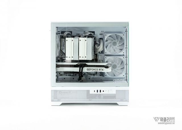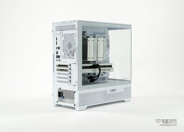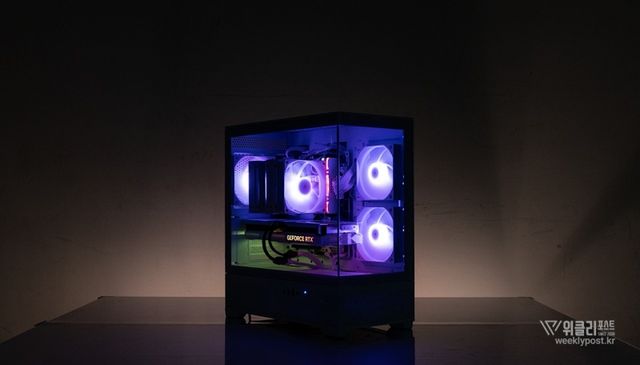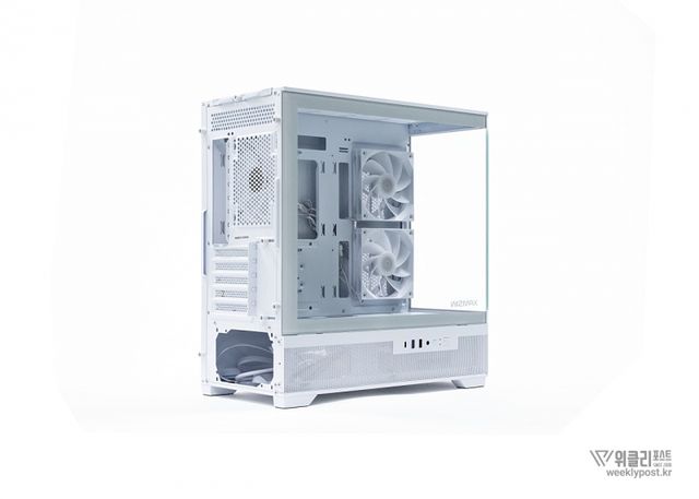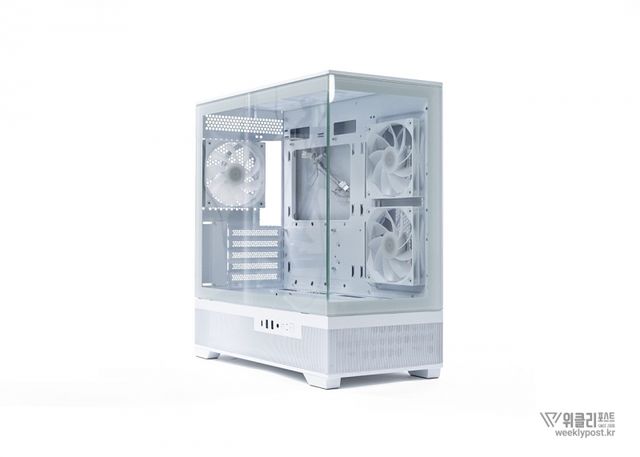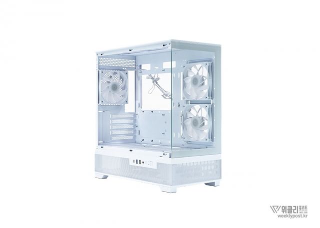 케이스는 4면에 걸친 다중 쿨링 설계로 쿨링 성능도 업그레이드되었다. 우측면과 상단에는 원활한 공기 흐름을 위해 타공망이 배치되었으며, 하단과 후면에는 냉각팬을 장착해 효과적인 공기 순환을 제공한다. 외관뿐만 아니라 실질적인 냉각 성능에도 신경을 많이 쓴 점이 돋보인다.