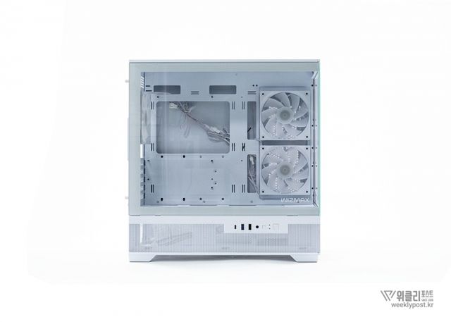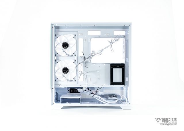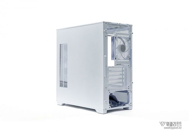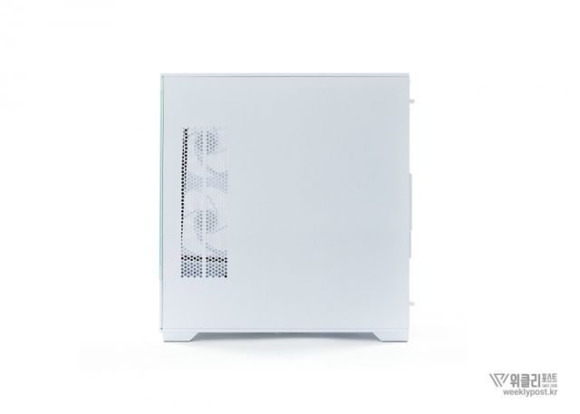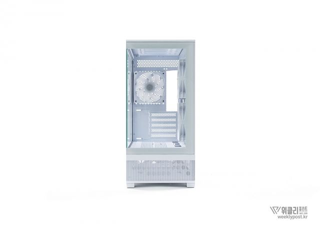 후면에 120mm aRGB 팬 1개가 기본 제공되며, 이 쿨링팬은 케이스와 색상을 맞춘 블랙 또는 화이트로 제공되어, 내부 조명 효과를 더욱 돋보이게 한다.
