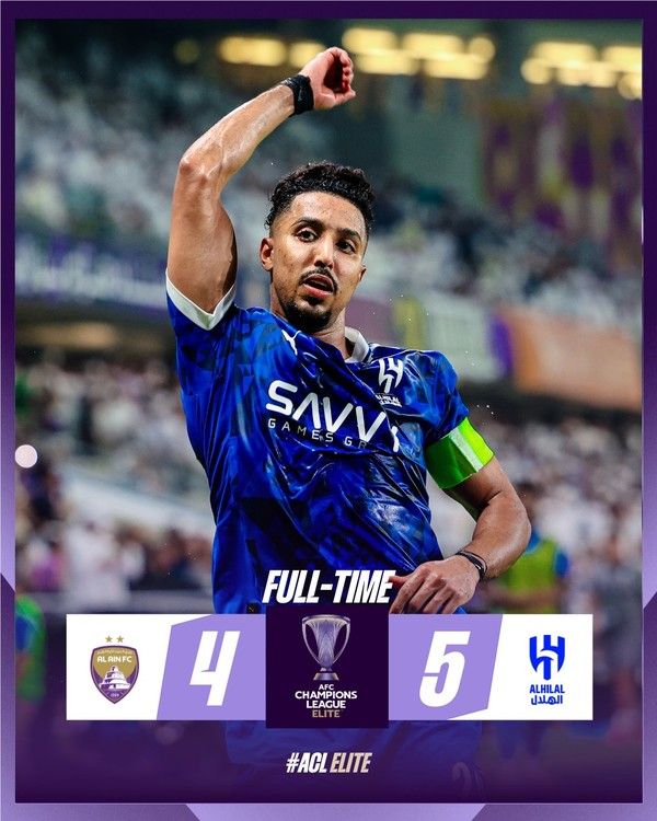22일(한국시간) 아랍에미리트 알아인의 하자 빈 자예드 스타디움에서 2024-2025 아시아축구연맹 챔피언스리그 엘리트(ACLE) 리그 페이즈 3차전을 치른 알힐랄이 알아인은 5-4로 꺾었다. 알힐랄은 승점 9점, 득실차 +8로 서부 1위에 오른 반면 알아인은 승점 1점에 머물며 리그 11위에 처져 있다.