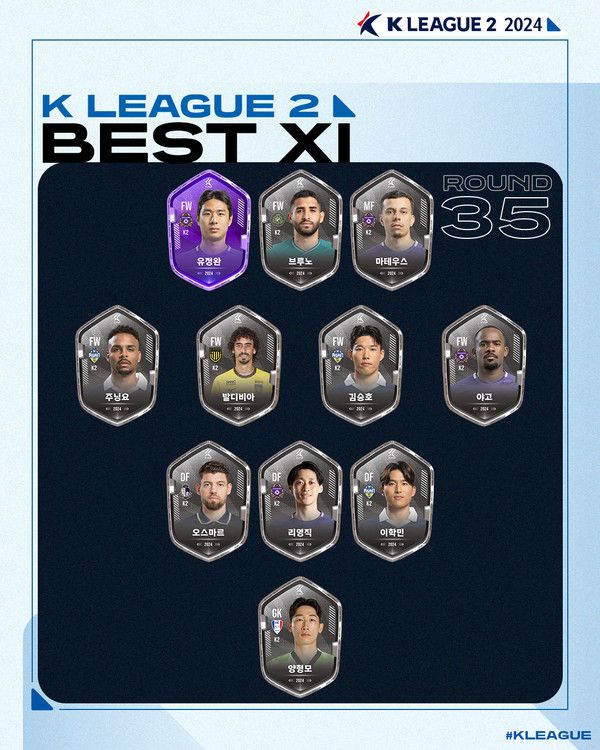 안양은 라운드 MVP 유정완을 포함해 마테우스, 야고, 리영직 등 다양한 포지션의 선수들이 라운드 베스트11에 이름을 올리며 K리그2 35라운드 베스트 팀에도 선정됐다.