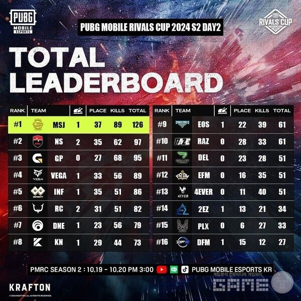 이번 하반기 시즌은 연말 최고 권위의 국제 대회인 ‘2024 배틀그라운드 모바일 글로벌 챔피언십(PUBG MOBILE GLOBAL CHAMPIONSHIP, 이하 PMGC)’의 출전권 1장을 두고, 19일과 20일 양일간 온라인으로 진행됐다.