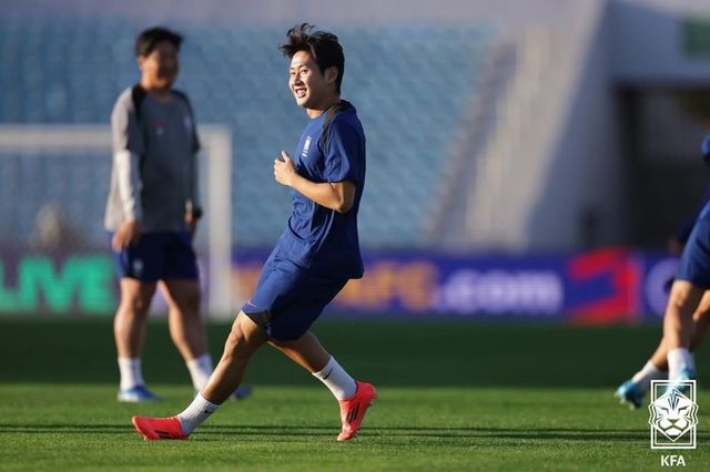 대한민국 축구대표팀 이강인이 지난 9일 요르단 암만 인터내셔널스타디움에서 요르단과의 2026 FIFA 북중미 월드컵 아시아 3차 예선 경기에 앞서 공식훈련을 하고 있다. / 대한축구협회 제공