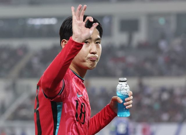 지난 15일 오후 경기 용인시 처인구 용인미르스타디움에서 열린 2026 국제축구연맹(FIFA) 북중미 월드컵 아시아 3차 예선 B조 4차전 대한민국과 이라크의 경기에서 후반전 대한민국 이강인이 홍현석과 교체된 뒤 팬들에게 인사하고 있다. / 뉴스1