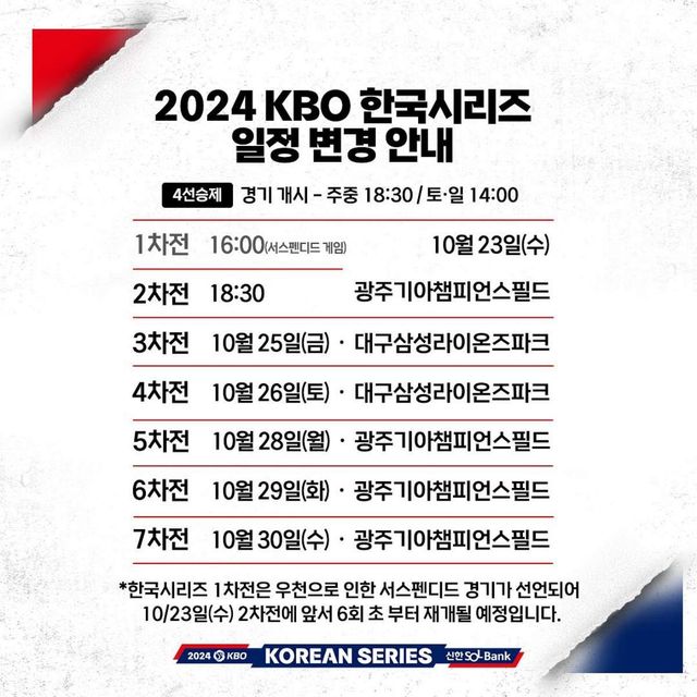 2024 신한 SOL뱅크 KBO 한국시리즈 - 일정 변경 안내 / KBO 인스타그램