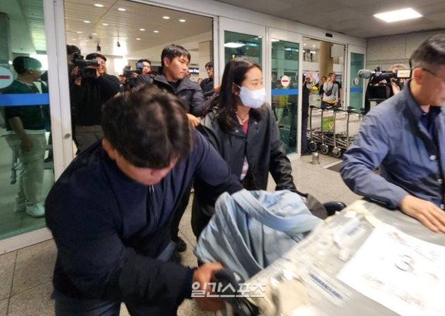 먼저 입국장에 모습을 드러낸 김학규 감독은 관련 논란에 "지금 말 할 수 있는 건 시간이 필요하다는 것"이라고 답한 뒤 이동했다. '불편한 동행'이었다는 점을 인정하면서도, 관계 개선을 모색하겠다는 의미로 풀이됐다.