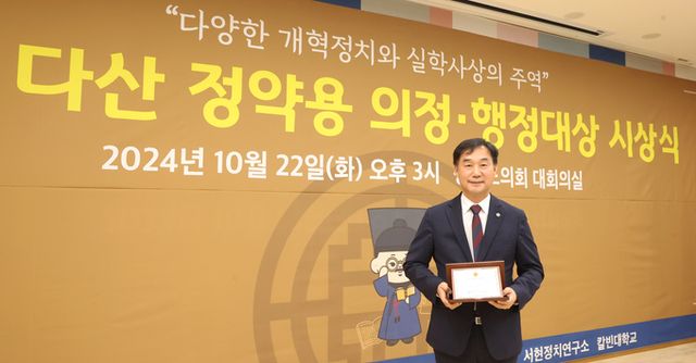 [와이뉴스] 경기도의회 농정해양위원회 부위원장 윤종영 의원(국민의힘, 연천)이 22일(화) 경기도의회 대회의실에서 열린 제3회 다산 정약용 의정행정대상 시상식에서 광역의원 부문 의정대상을 수상했다.
