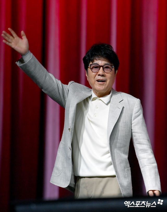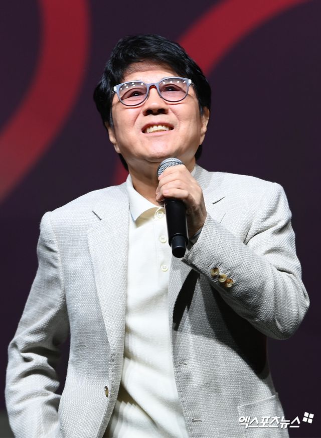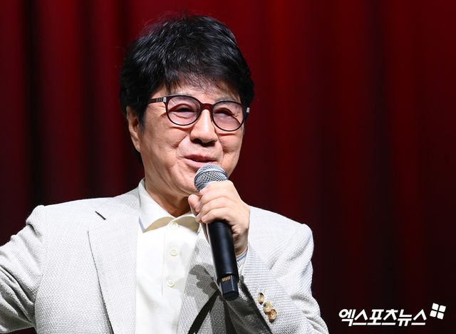 가수 조용필이 기자간담회에 참석하고 있다.