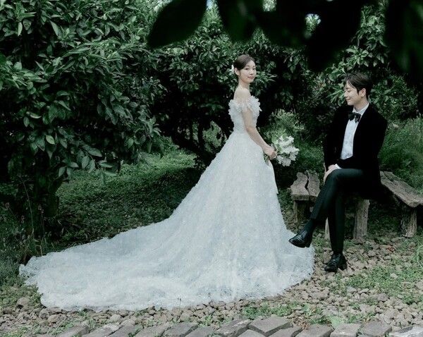 김연아는 22일 자신의 SNS에 "두번째 결기"라는 글과 함께 웨딩 화보를 게재했다. 공개된 사진 속 김연아와 고우림은 푸른 초원을 배경으로 환한 미소를 지으며 행복한 분위기를 연출했다. 특히 김연아의 웨딩드레스 자태는 보는 이들의 감탄을 자아냈다.