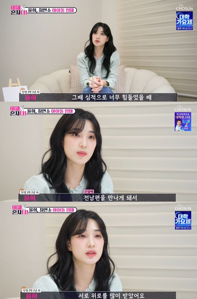 율희는 "무대에 서는 건 너무 행복했다. 근데 너무 어릴 때 사회 경험도 없이 데뷔하다 보니까 무대 서는 것 빼고는 심리적으로 많이 힘들었다"고 아이돌 시절 심적으로 힘들었음을 토로했다.