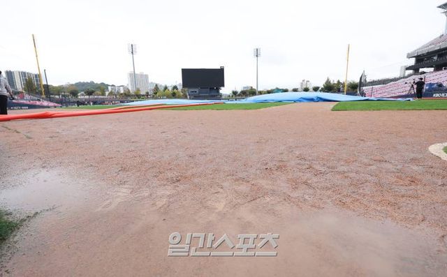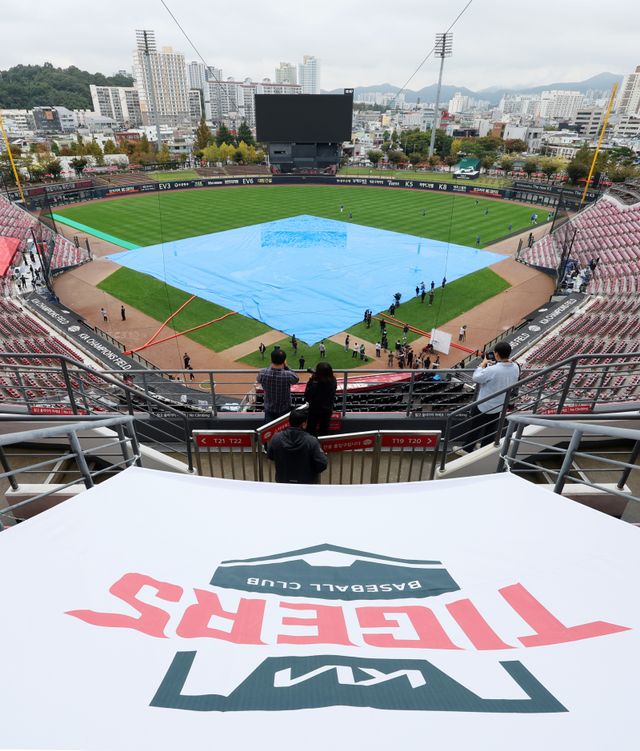 하지만 날씨가 문제였다. 21일 저녁부터 내린 비 때문에 그라운드가 흠뻑 젖었다. 양 팀 더그아웃 앞 파울 지역은 진흙탕이었다. 방수포를 덮은 잔디 상태까지 원활하지 않았다. 배수 작업을 진행한 현장에선 경기 개시 시간을 맞추기 어렵다는 얘기가 나왔다. 이날 저녁 광주 지역의 국지성 호우 예보까지 확인한 KBO는 결단을 내릴 수밖에 없었다.