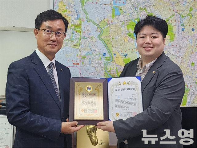 수원시의회 배지환 의원(국힘, 매탄1·2·3·4동)이 22일 2024년 제7회 '한국을 빛낸 글로벌 100인 대상' 시상식에서 지자체의정부문 대상을 수상했다.