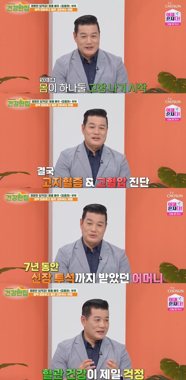 22일 방송된 TV조선 '건강한 집'에는 배우 정흥채와 아내 배혜령이 함께 출연하여 혈액 면연력 키우는 비법에 대해 알아봤다.