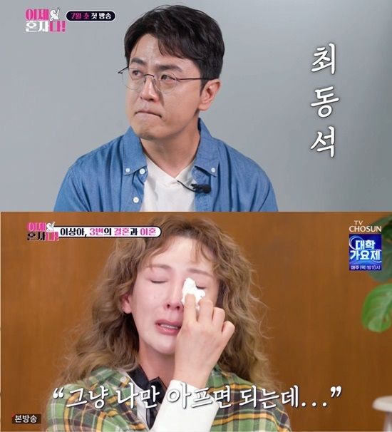 이상아도 '이제 혼자다'의 15일 방송에 출연해 첫 이혼 후유증을 토로했다. 그는 첫 번째 전 남편인 김한석과 결혼 4개월 만에 별거를 시작했다며 "끝까지 기다렸는데, 나랑 못 살겠다고 하더라. 살 닿기도 싫다고 했다. '나랑 왜 결혼했냐'고 물었더니 내가 너무 싫다고 했다"고 폭로해 논란이 일었다.