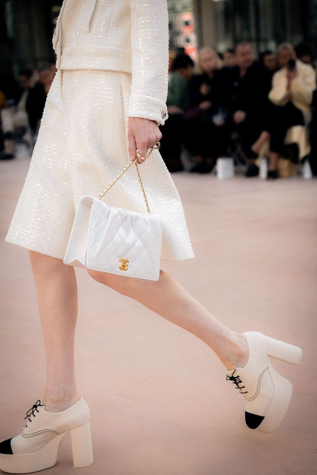 지난 6월, 버지니 비아르가 5년간의 임기를 마치고 샤넬을 떠났다. 샤넬은 지난 쿠튀르 시즌에 이어 크리에이션 스튜디오에게 2025 S/S 컬렉션을 맡겼다. 그들은 새와 나비처럼 날개를 가진 동물이 스스로의 힘으로 공중에 솟구쳐 오른다는 ‘비상(飛翔)’을 대주제로 삼았다. 그래서일까? 본당 중앙에는 하얗고 거대한 새장이 관객을 맞이했는데, 이는 한 재봉사가 가브리엘 샤넬에게 한 쌍의 새가 들어 있던 새장을 선물했다는 일화를 떠오르게 했다. 샤넬 크리에이션 스튜디오는 “사회의 거추장스러운 시선으로부터 패션을 통해 스스로를 해방시킨 가브리엘 샤넬과 같이 여성을 핍박하는 사회적 관습과 편견에 맞선 용감한 여성들에게 보내는 헌사”라고 밝혔다. 공개된 컬렉션은 가벼움 그 자체였다. 시폰 소재로 완성한 케이프와 살결이 비치는 투명한 자수 셔츠 드레스, 발걸음에 찰랑이는 와이드 컷 팬츠는 물론 룩에 화려함을 더하는 시퀸 소재, 깃털 장식과 프린트 등 새의 날갯짓을 연상케 한 룩이 연이어 등장했다. 또, 코코 샤넬의 롤모델이자 당대 모든 여성들의 워너비였던 배우 겸 작가 콜레트(Colette)가 떠오르는 테일러링 트위드 세트업과 윙팁 플랫폼 슈즈, 유리 천장을 깨트리며 새로운 역사를 쓴 여성 비행사를 표현한 애비에이터 재킷을 비롯해 1920년대 여성의 독립적인 인권을 위한 ‘가르손느(Garconne)’ 운동에서 영감을 받은 편안하지만 여성미가 가득한(지극히 샤넬다운) 룩을 선보였다. 한편, 쇼 말미 경쾌한 운율과 함께 엘비스 프레슬리의 외손녀이자 샤넬의 앰배서더인 라일리 키오(Riley Keough)가 등장했다. 그랑 팔레 유리 지붕 아래 놓인 새장 속 그네를 탄 그녀는 프린스의 ‘When Doves Cry’를 열창하며 피날레를 장식해 관객들을 열광시켰다.