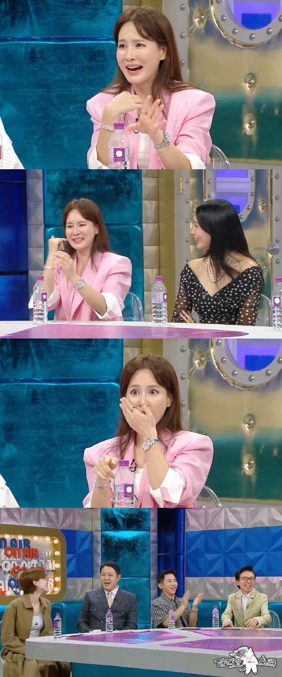 이혜원은 남편 안정환이 자신의 '라디오스타' 출연을 강하게 반대한 사연을 공개하며 웃음을 자아낸다.
