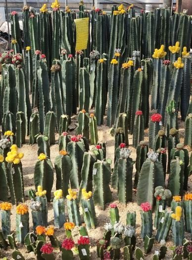 ‘접목선인장’은 두 종류의 선인장을 붙여 만든 품종으로, 보통 10~15cm 길이의 삼각주 선인장을 대목(기둥이 되는 선인장)으로 삼고 빨강, 노랑, 분홍 등 화려한 색상의 선인장을 접목해 생산한다.