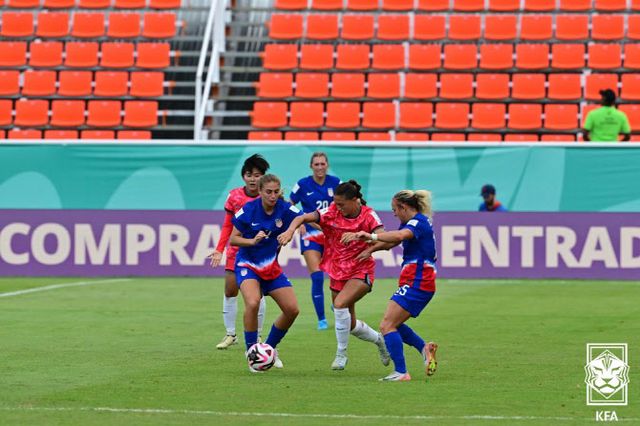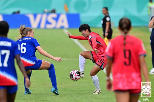 한국은 23일(한국시간) 도미니카 공화국 산티아고 데 로스 카바예로스의 에스타디오 시바오FC에서 열린 2024 국제축구연맹(FIFA) U-17 여자 월드컵 조별리그 B조 3차전에서 미국에 0-5로 크게 졌다.