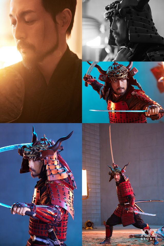 또한 도깨비를 연상케 했던 겐신의 트레이드 마크이자 극 중 조선 의병들을 두려움에 떨게 했던 뿔 달린 투구를 눌러쓰고 장검과 단검을 양손에 쥐고 포즈를 취하고 있다. 이런 모습은 극 중 캐릭터와 높은 싱크로율을 보여주고 있다.