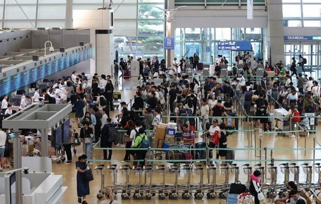 인천국제공항 제1여객터미널 출국장이 해외로 떠나려는 여행객으로 붐비고 있다. / 연합뉴스