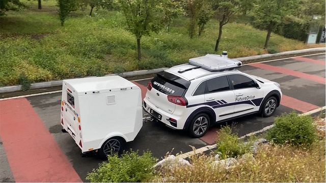 자율차-충전트레일러 결속상태에서의 일반도로 구간 자율주행 예시. 사진제공=퓨처드라이브