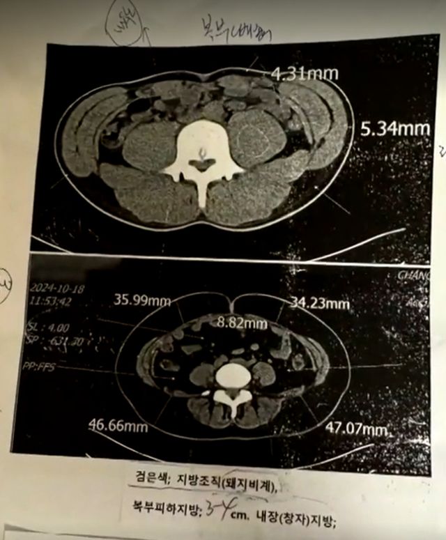 결과지 속에 '지방 조직'이라는 단어 옆에 '돼지비계'라는 글이 적혀 있었기 때문이다. 의사는 "비계가 너무 많다" "살쪄서 그런 거다" "이게 다 지방이다" 등 말을 하며 증상의 원인을 설명했다.