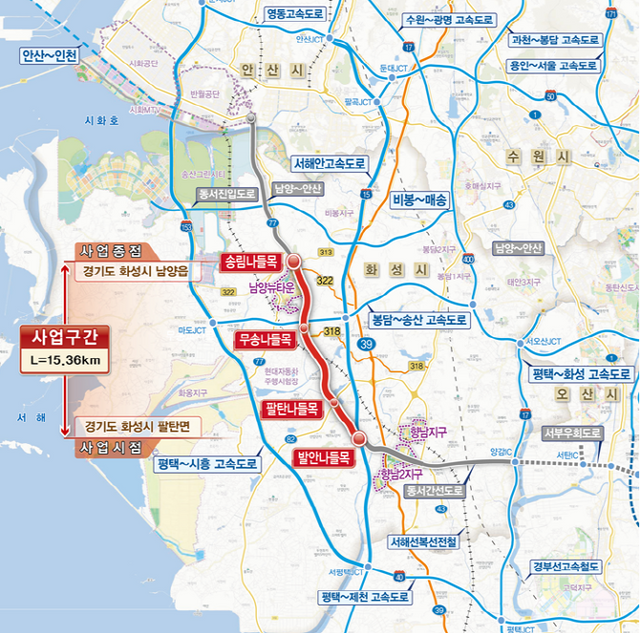 이는 화성시 향남읍 상신리부터 남양읍 송림리까지 약 15.36㎞를 연결하는 왕복 4차로의 자동차 전용도로를 조성·운영하는 사업이다. 실시설계, 각종 영향 평가 등을 거쳐 오는 2026년 착공해 2029년 말 개통할 예정이다. 공사 기간은 착공일로부터 48개월이며, 운영 기간은 개시일로부터 40년간이다.