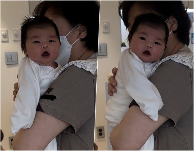 23일 김다예는 자신의 인스타그램에 "삼촌 이모들"이라며 "오늘 전복이랑 눈 마주치기 성공했어요 점점 똘망똘망해져요"라는 글과 함께 사진을 게재했다.