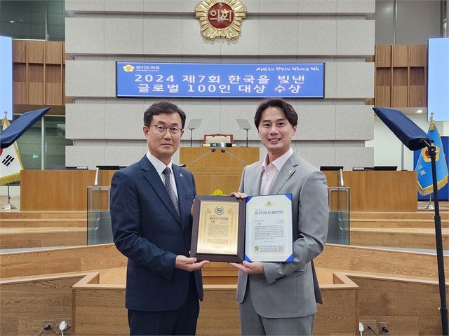(경기=뉴스영 공경진 기자) 경기도의회 문화체육관광위원회 황대호 위원장(더불어민주당, 수원3)이, ‘2024 제7회 한국을 빛낸 글로벌 100인 대상’에서 대한민국 지자체 의정부문 대상을 수상했다. 이 상은 정치, 경제, 사회, 문화 등 각 분야에서 대한민국을 빛낸 인물을 선정해 수여하는 것으로, 황대호 위원장은 그동안 경기도의 지역 발전과 도민의 삶의 질 향상에 기여한 공로로 이 상을 받게 됐다.