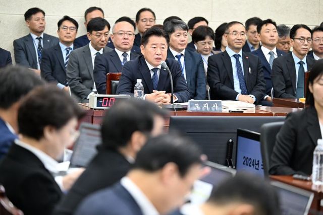 한편 이날 국감은 오전 10시부터 시작될 예정이었으나, 더불어민주당 소속 의원들이 입장하지 않아 30여분 정도 지연됐다. 국감 개시가 미뤄지는 사이 오 지사가 잠시 자리를 비웠는데, 국감 현장에 도착해 기다리고 있던 국민의힘 소속 국회의원들은 강하게 항의의 뜻을 전달했다.