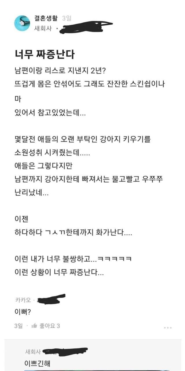 남편이 리스 인데 강아지한테도 빠져서 화난 아내.jpg
