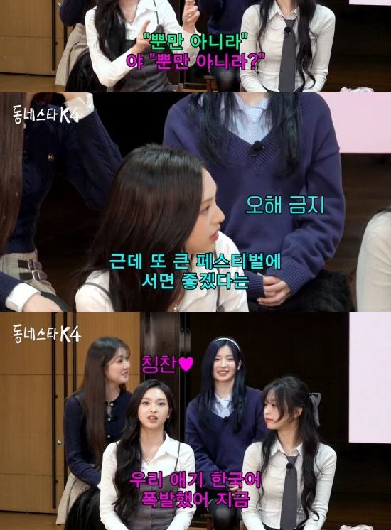이를 들은 라미는 "우리 애기 꿈이 크다"고 말했고, 로라는 "우리 애기 한국어 폭발했다 지금. '뿐만 아니라' 처음 들었다"고 감탄했다.