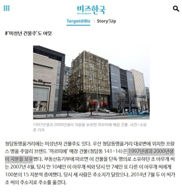 외조부로부터 만 10세, 만 7세에 증여받아 현재 나이 만 27살, 24살