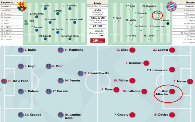 한편 23일 스페인 매체 문도 데포르티보, 아스는 바르셀로나-뮌헨전 예상 선발 라인업을 공개했다.