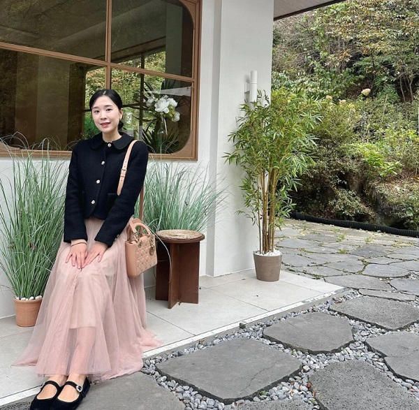 사진 속 현숙은 한 카페에서 여유로운 일상을 즐기고 있는 모습이다.