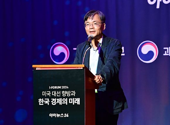 조철 산업연구원 선임연구위원은 23일 서울 중구 롯데호텔 크리스탈볼룸에서 열린 '아이포럼 2024'에서 미국 대선 결과에 따른 한국 자동차와 배터리 업계의 영향을 점검하고 대응 방향을 발표했다.
