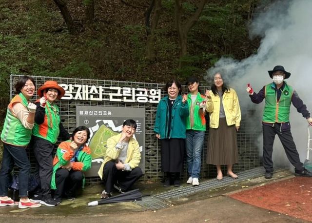 [와이뉴스] 광명시 철산3동 자율방재단은 지난 22일 가을 해충과 모기 퇴치를 위해 왕재산 근린공원을 연막 소독했다.