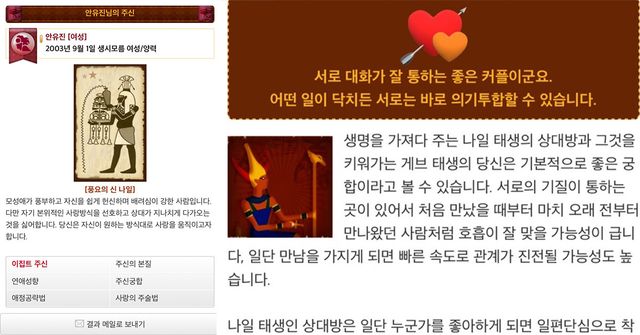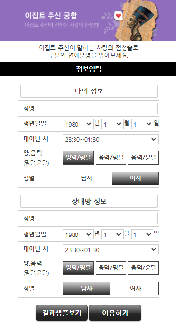 위키사주 이집트 주신 궁합 사주 화면 / 위키사주