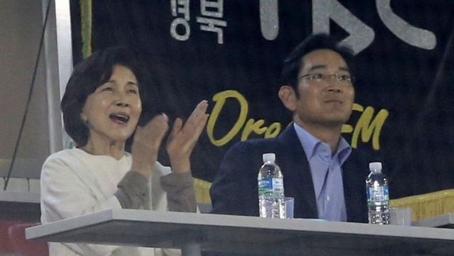 2015년 5월 이재용 당시 삼성전자 부회장(오른쪽)이 서울 송파구 잠실야구장에서 열린 삼성과 두산의 정규리그 경기를 보고 있다. 왼쪽은 홍라희 리움미술관 관장. / 연합뉴스