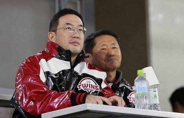 구광모 LG그룹 회장도 지난해 한국시리즈에서 LG 트윈스 팬들과 함께 응원하며 야구 사랑을 보여준 바 있다. 그는 유광 점퍼를 입고 파도 타기 응원에도 동참해 팬들과 소통하는 모습을 보였다.
