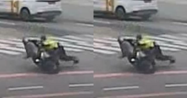 경찰관은 A 씨의 오토바이에 번호판이 없는 것을 확인한 후 도로를 가로질러 A 씨에게 접근했다.