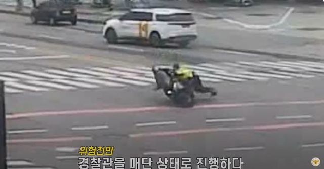 제지하는 경찰관 매달고 그대로 도주하는 오토바이 운전자 / 경찰청 유튜브 채널