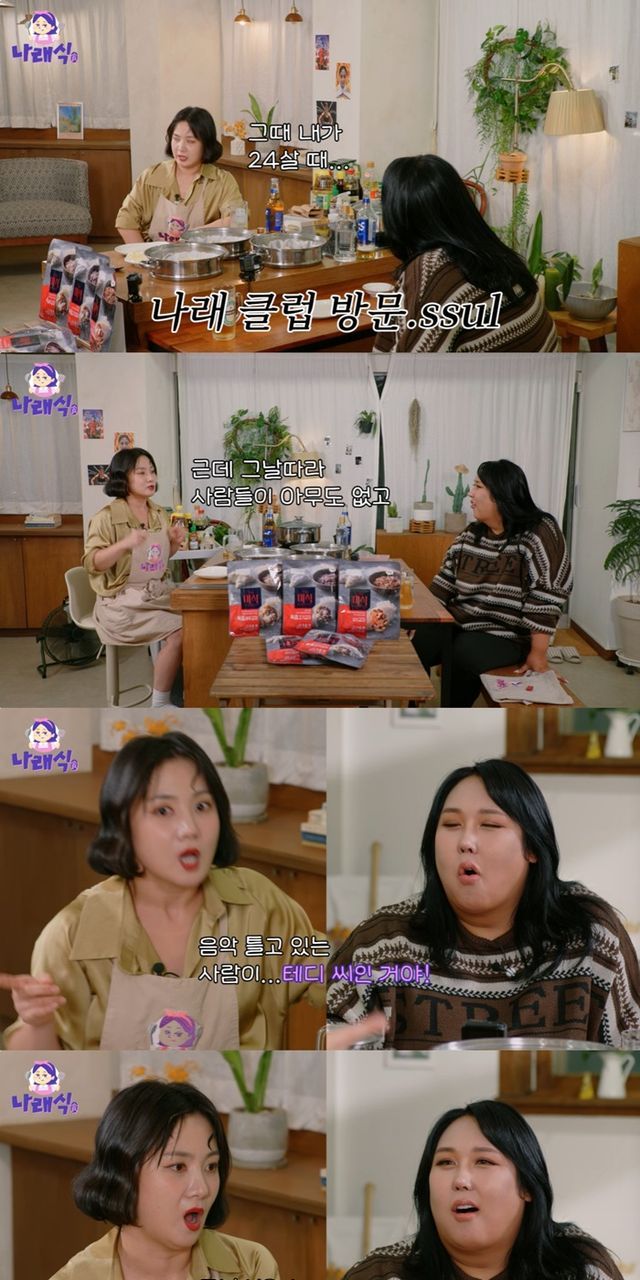박나래는 풍자와 대화 중 클럽 방문 일화를 공개했다. 박나래는 "내가 24살 때 클럽에 미쳐있을 때다. 개그우먼들끼리 돈을 모아 VIP 2층 바를 잡았다"며 "근데 그날따라 사람이 없고, 우리랑 저 구석에만 사람들이 있더라"고 운을 뗐다.