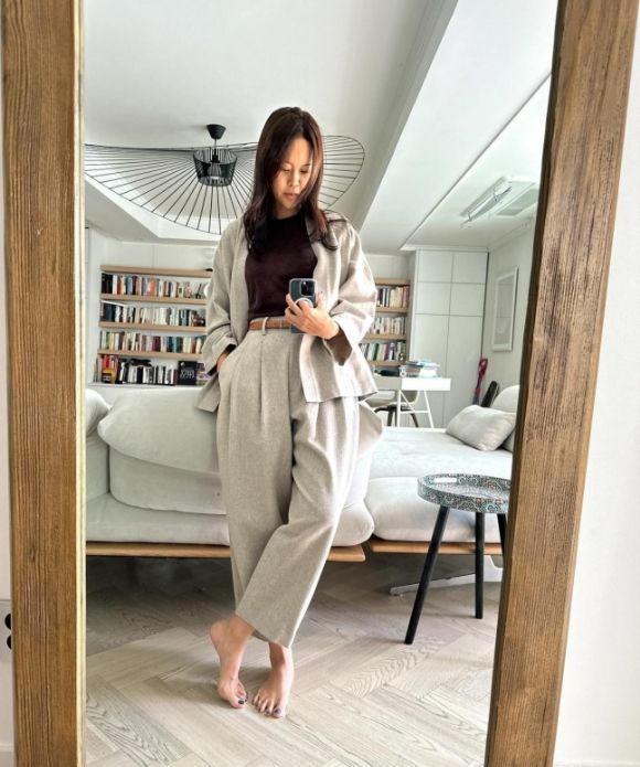 공개된 사진에는 그레이 셋업을 입고 셀카를 찍고 있는 백지영의 모습이 담겼다. 뒤로 보이는 그레이톤의 모던한 인테리어가 눈길을 끈다.