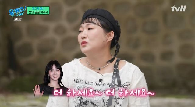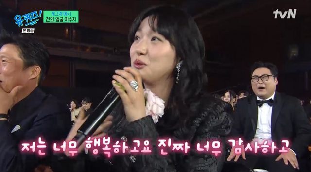 이수지는 23일 방송된 tvN ‘유 퀴즈 온 더 블록’에서 지난 5월 열린 제60회 백상예술대상을 회상했다. 당시 그는 김고은 앞에서 드라마 ‘도깨비’와 영화 ‘파묘’를 성대모사 했다. 백리스 스타일의 의상을 입은 가운데 등에 “김고은 님 밥 한 번 먹어요. 제가 다 해명할게요”라는 사과의 메시지를 적어 눈길을 끌었다.